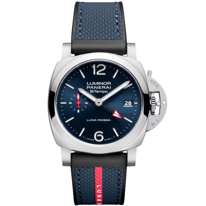 LUMINOR QUARANTA BITEMPO LUNA ROSSA PAM01404 40 MM STAINLESS STEEL WITH BLUE DIAL